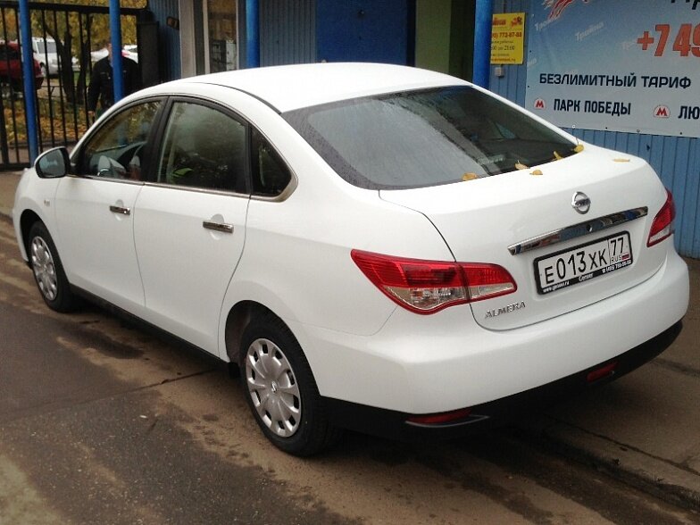 Московская прокатная компания «АрендаАвто-тлн» предлагает взять в аренду Nissan Almera IV MT белого цвета с механической коробкой передач по низкой цене.